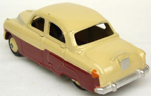 A gleaming two-tone finish on this classic Dinky car in maroon and cream with cream hubs. Silky factory-fresh original colours throughout. Apart from a few little dots to a couple of the raised body lines and a faint small scratch on the roof, it would be very hard to find fault with this one!