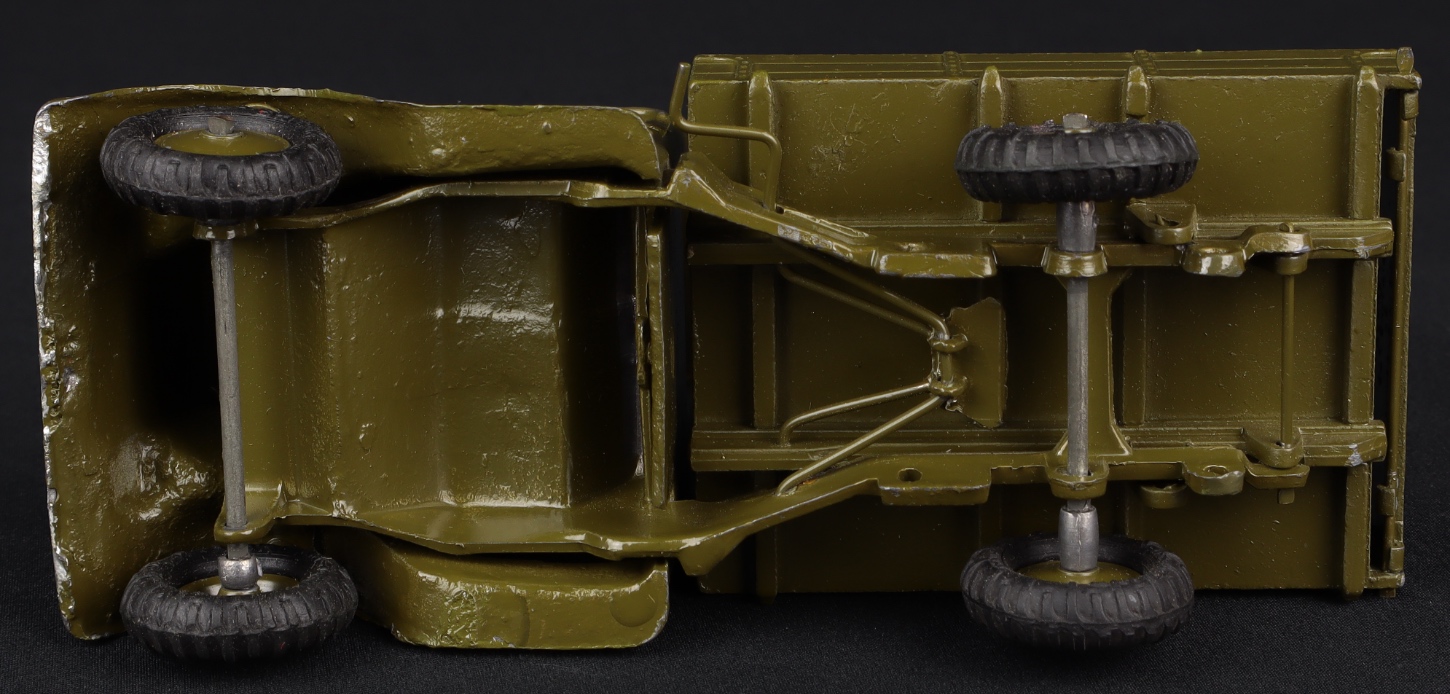 Army Lorry (Round nose cab version) by Britains, No. 1334. Metal wheels. Very near mint/boxed, with driver. Scarce. From The Denis Tyler Collection. Starting bid £75. Please note that QDT apply 12.5% buyer's commission.