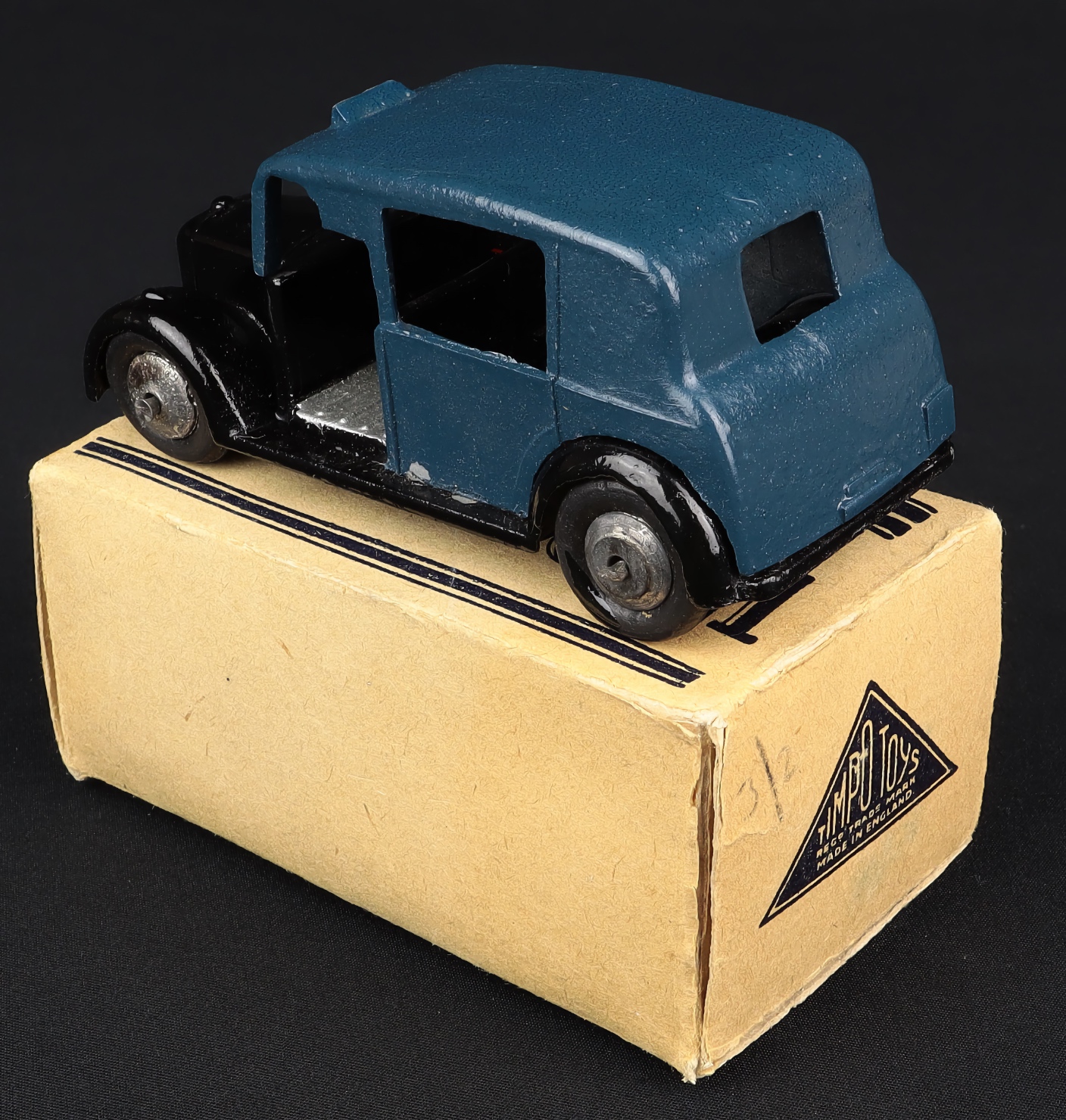 London Taxi Cab by Timpo Models. From 1947. Near mint plus/boxed. Scarce find from The Denis Tyler Collection. Starting bid £100. Please note that QDT apply 12.5% buyer's commission.