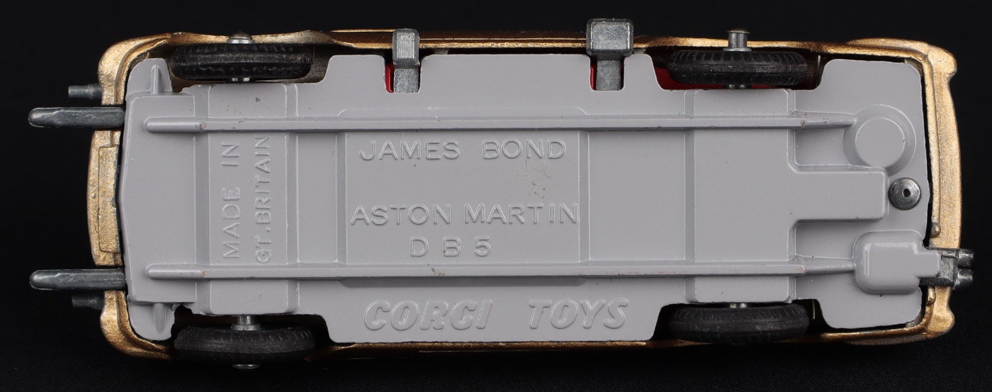 Always a sought-after Corgi toy, this James Bond Aston Martin is a first issue casting (production run 1965-69). Note the indicator light casting and double side vent present on this early issue.