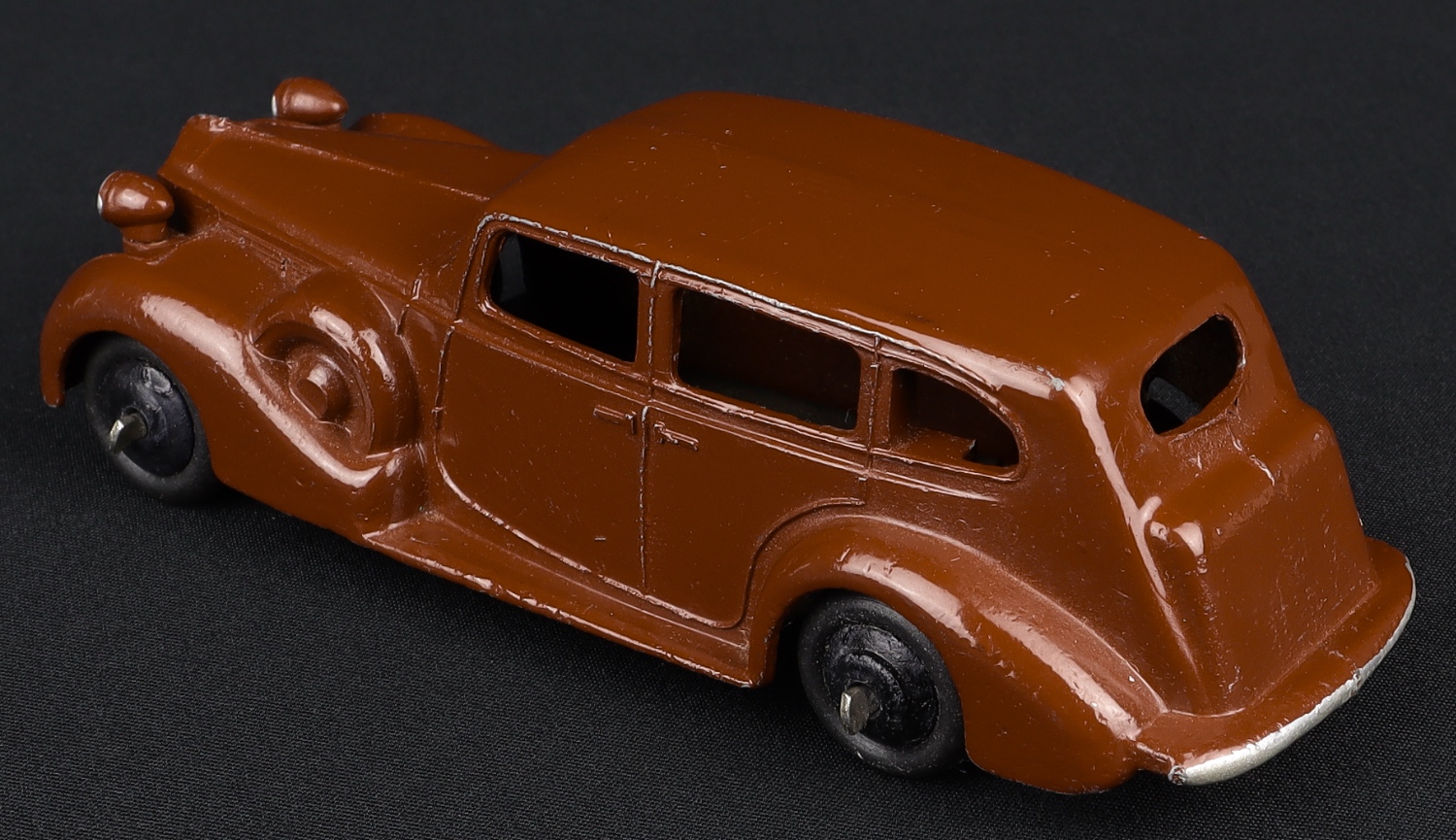 Issued between 1947-50, this Packard model has a shining rich brown paint finish, black ridged wheels and bright baseplate. Just a few little rubs/marks on this car which would have been sold out of a Dinky Trade Box, so never boxed individually.