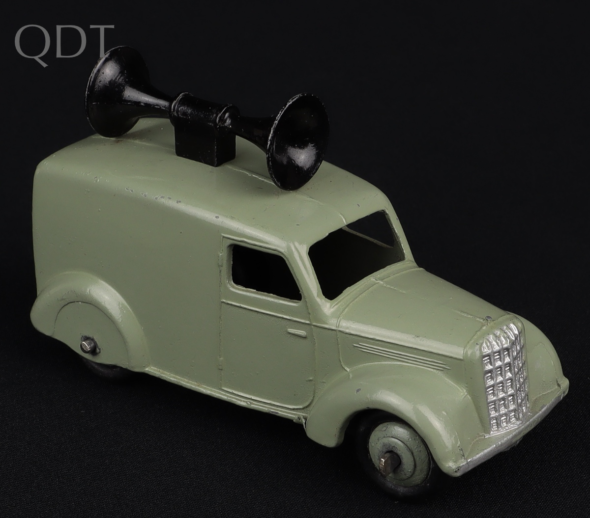 Loudspeaker Van by Dinky Toys, No.34C. Grey with black loudspeaker and grey wheels. Near mint plus/never individually boxed. From a one owner from new collection.Starting bid £75. Please note that QDT apply 12.5% buyer's commission.