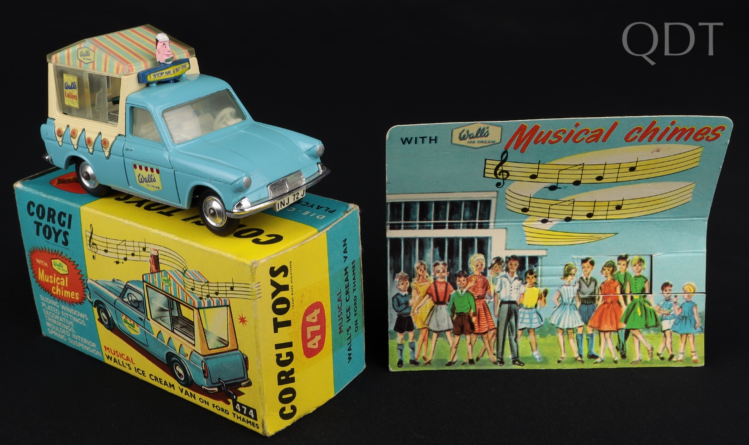 Musical Wall's Ice Cream Van by Corgi Toys, No. 474. Near mint plus/boxed. Part working chimes. Card stand and wrap-around card.