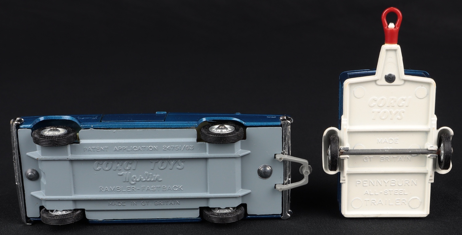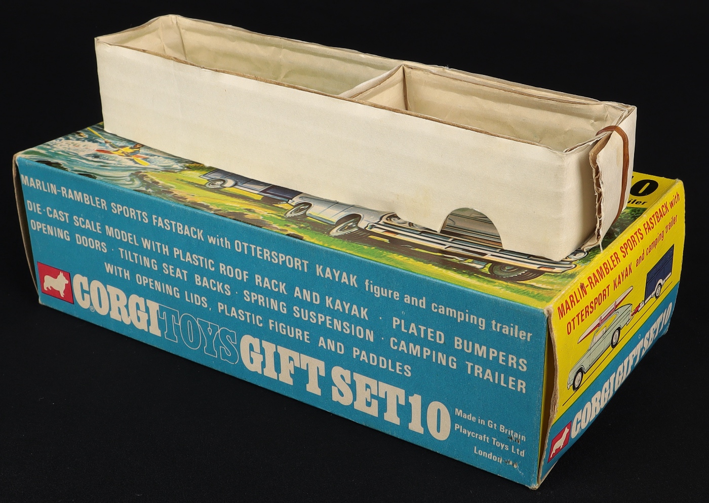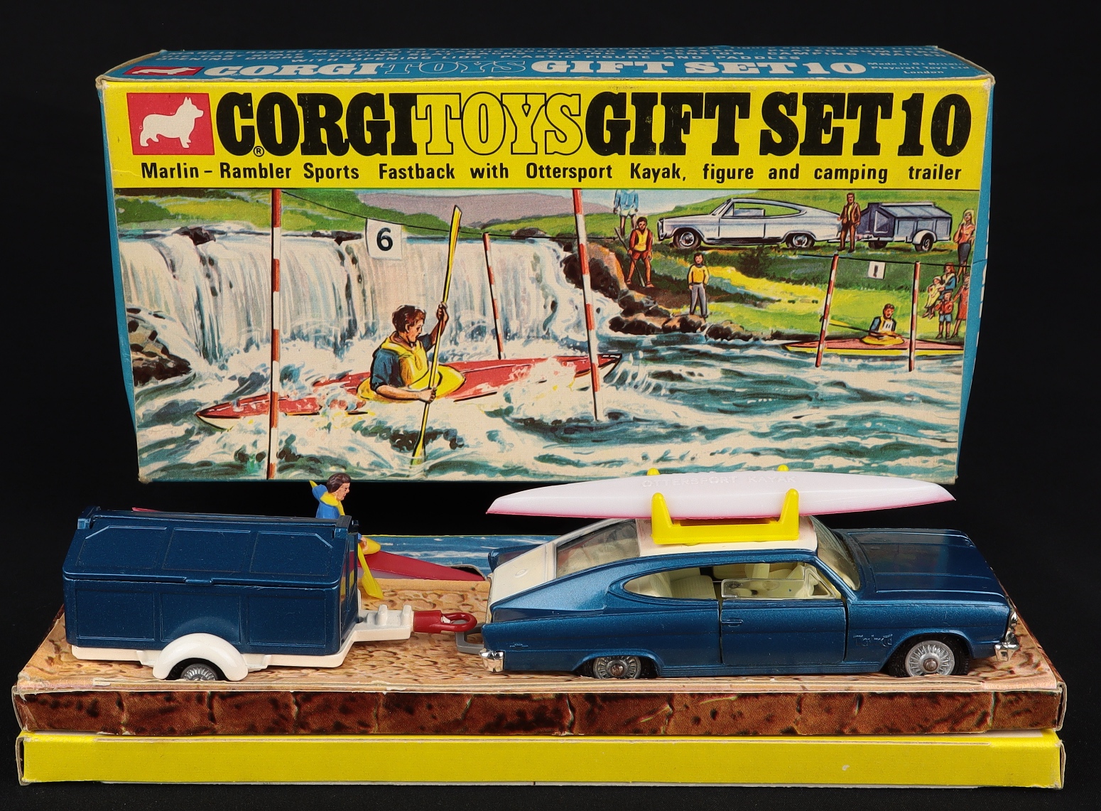 Marlin-Rambler Sports Fastback with Ottersport Kayak & Camping Trailer by Corgi Toys, Gift Set No. 10. Very, very near mint /boxed, with card packing. More high quality from The Elmer Collection. Starting bid £300. Please note that QDT apply 12.5% buyer's commission.