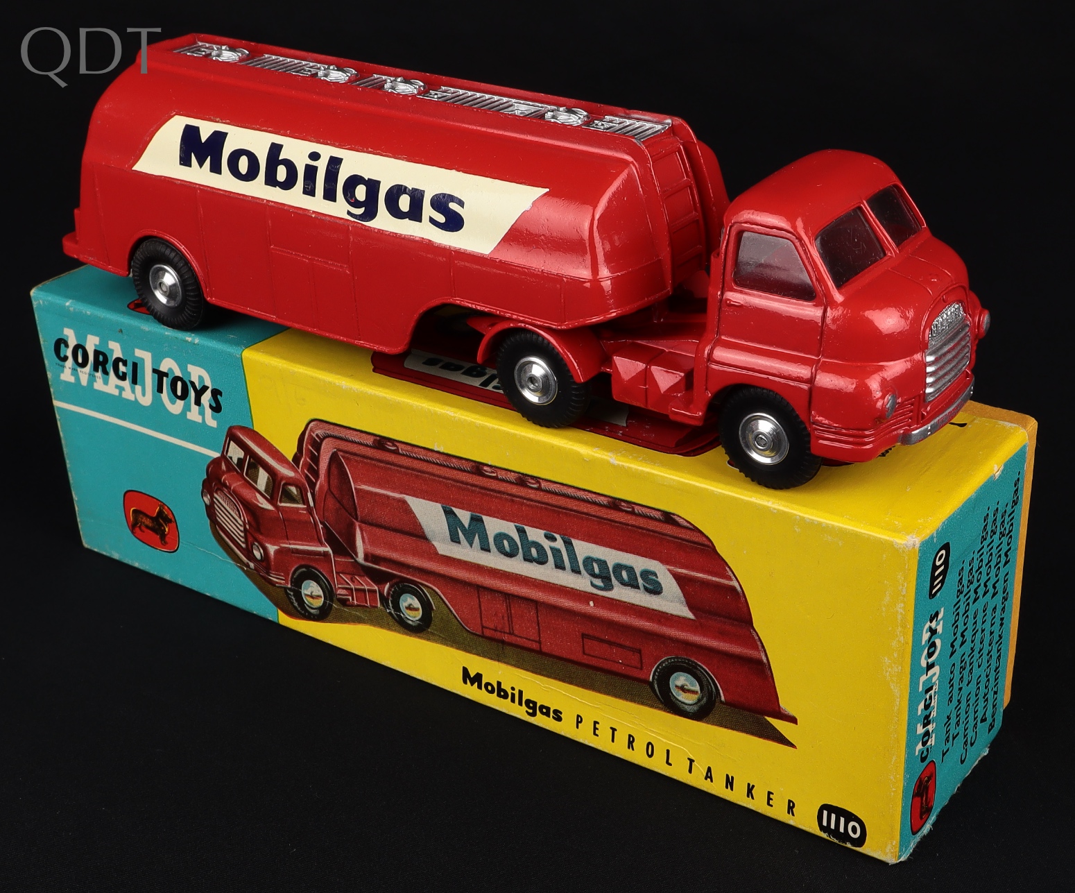 Mobilgas Petrol Tanker by Corgi Toys, No. 1110. Very near mint/boxed, with card packing. Shaped spun wheel issue. Scarce item from The Rickman Collection.