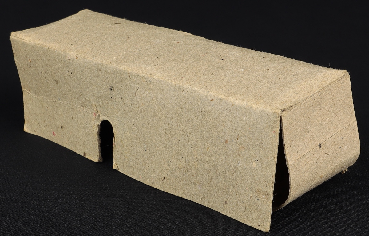 The box is strongly-coloured and complete with all end flaps ((minor tear to an internal end flap). Stamped numbering on the top surface. With card packing.