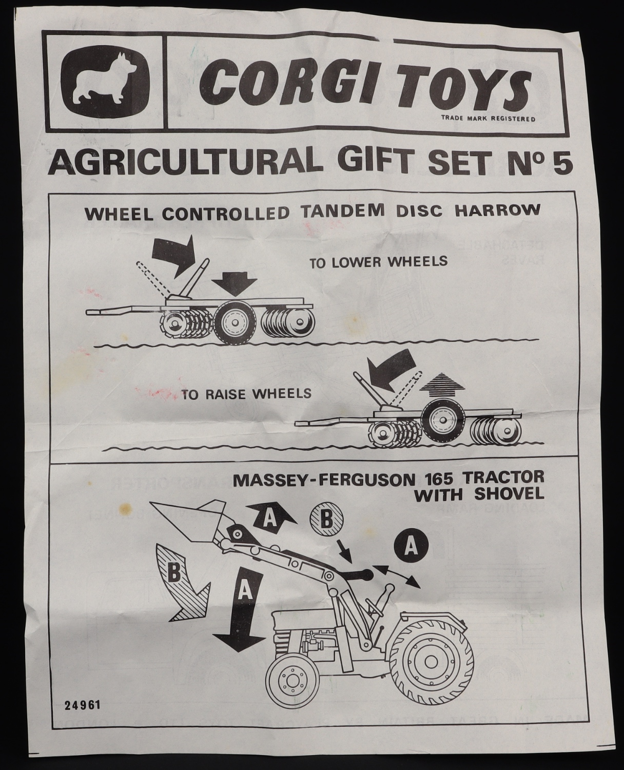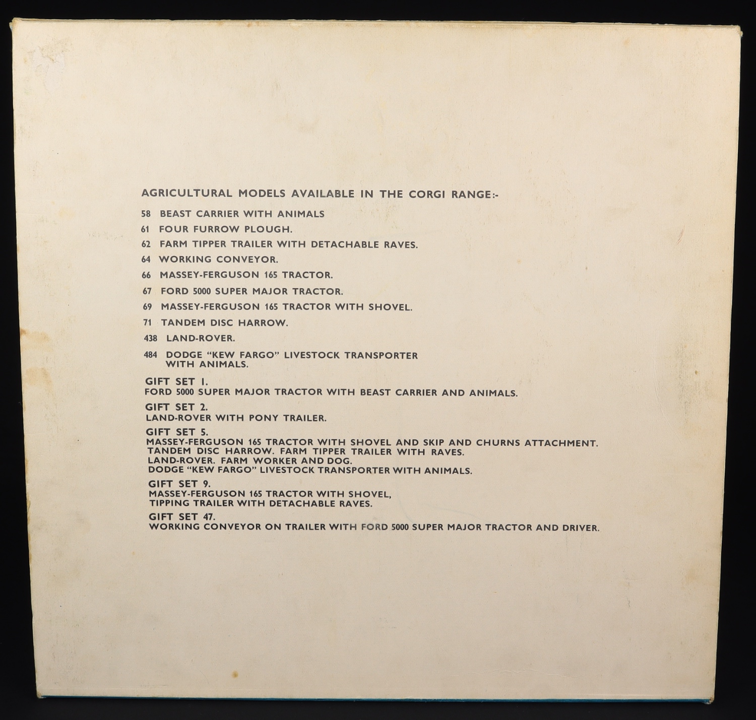 Agricultural Gift Set by Corgi No. 5. Complete. Very near mint/boxed, with Retailer Card & Leaflet. Early version with DARK GREEN Land-Rover.