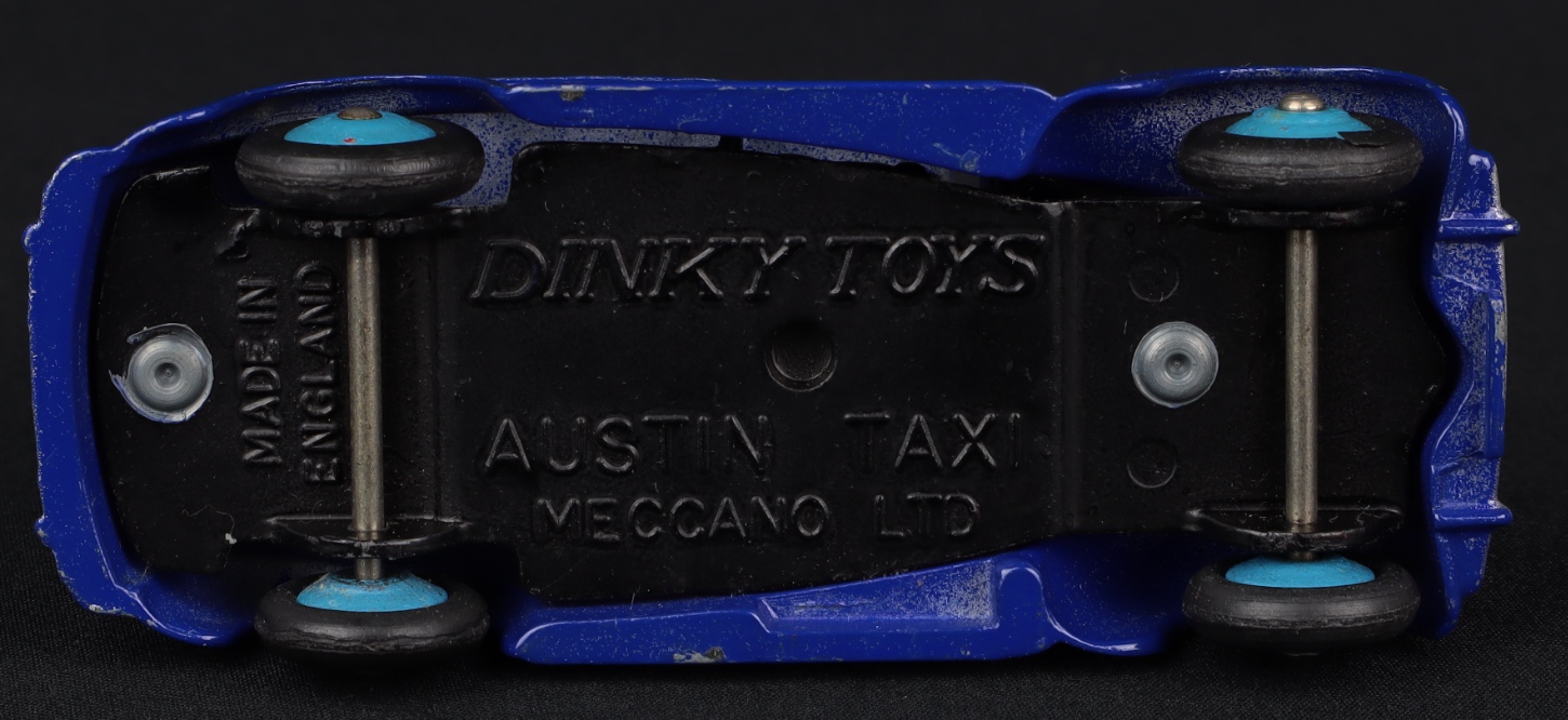 Austin Taxi. by Dinky Toys, No. 254. Near mint plus/boxed, with early colour spot. Rarest version in BRIGHT BLUE from The Reference Collection. A First for QDT! Starting bid £150. Please note that QDT apply 12.5% buyer's commission.