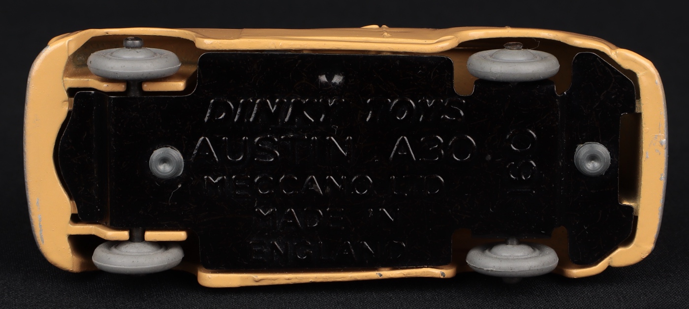Austin A30 Saloon by Dinky Toys, No. 160. Fawn with SMOOTH grey wheels. Very, very near mint/boxed. Nice box! From The Rickman Collection.