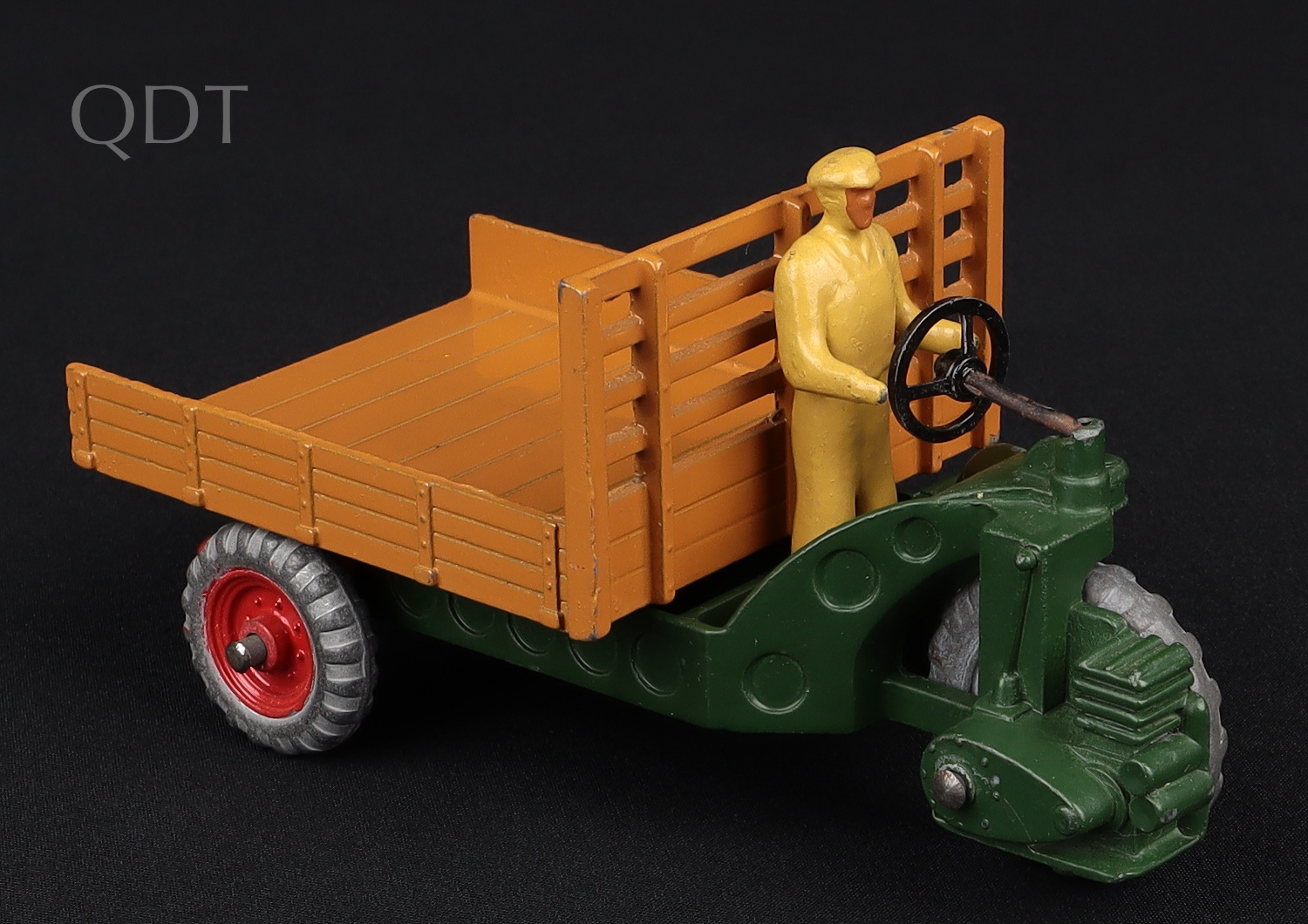 Moto Cart by Dinky Toys, No. 27G. Very near mint/not individually boxed. Early issue sold from Trade Box. DEEP GREEN & tan. Scarce. From The Reference Collection.