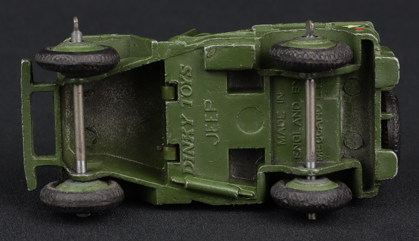 U.S. Military Jeep by Dinky Toys, No. 153A in original Dinky Shopkeeper's Trade box. . Very near mint. Scarce. From a one owner from new collection. Starting bid £75. Please note that QDT apply 12.5% buyer's commission.