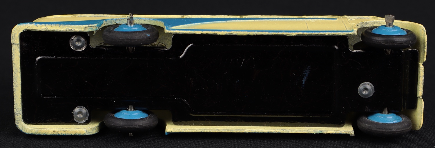 This early Dinky bus was produced between 1948-52. Original paint finish throughout shows that this bus has been carefully handled and stored. Very close to mint paint finish. Baseplate is shiny (minor ‘spidering’) – correct that there is no name or number on the base. Smooth black tyres are well-shaped.