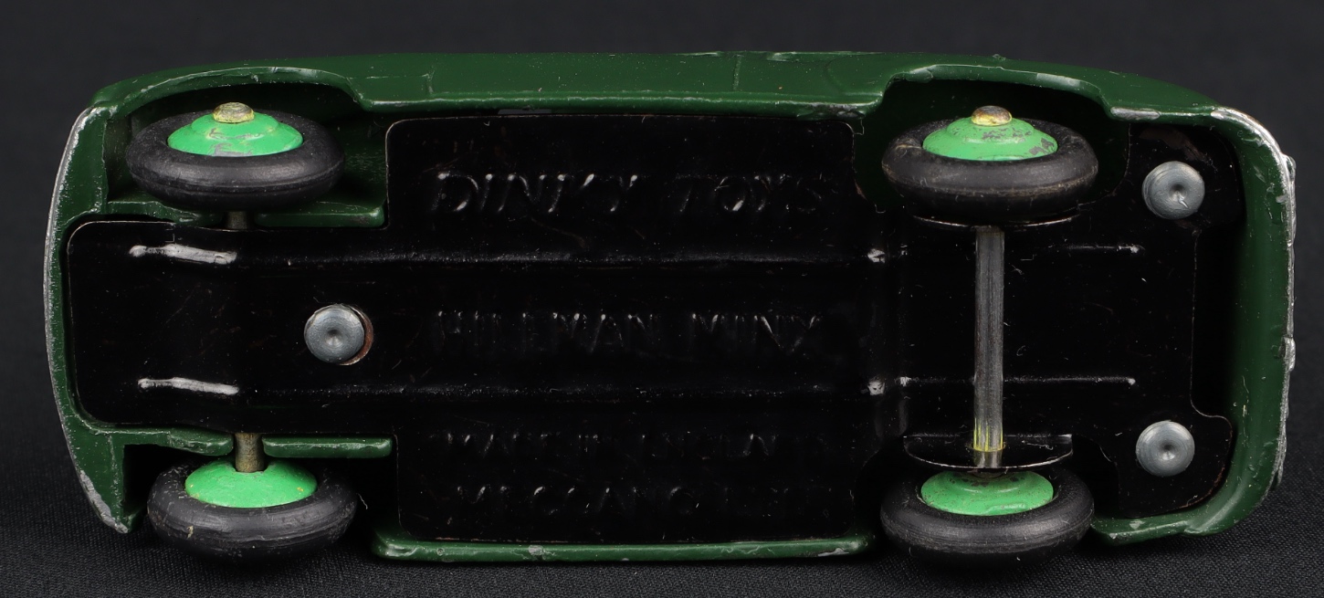 An original early example of this classic Dinky model first issued during 1951. This version in lustrous bottle green finish with lighter green ridged wheels is not an easy find. Early issue, so correct early ‘railed baseplate’ with small lettering.