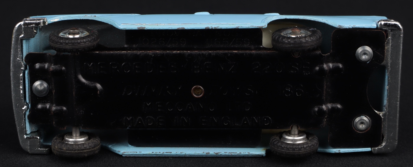 Mercedes Benz 220 SE by Dinky Toys, No. 186. Light blue, pale grey interior. Scarce. Very near mint/boxed. From The Rickman Collection.