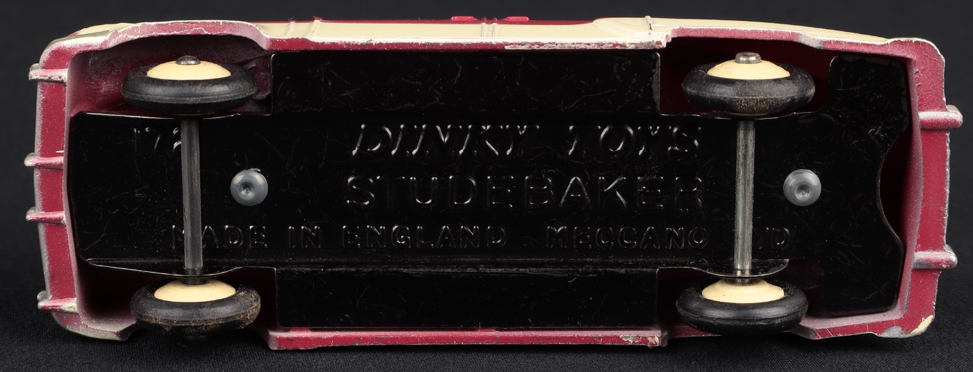Studebaker Land Cruiser by Dinky Toys, No. 172. Lowline version. Cerise and cream with deep cream wheels. Very near mint/boxed. From The Reference Collection.