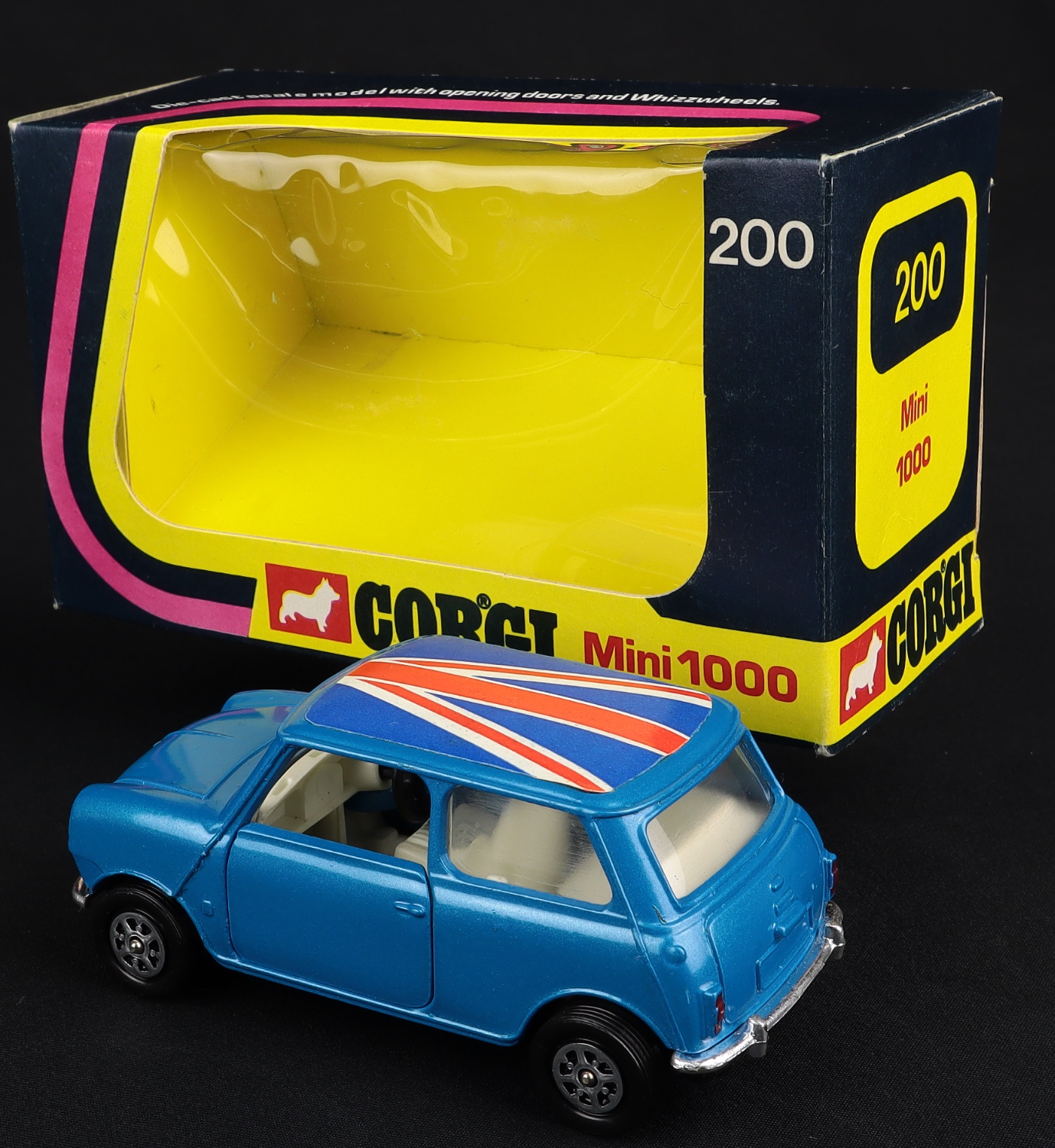 BLMC Mini 1000 by Corgi Toys, No. 200. Very near mint/boxed. Metallic blue. From The Elmer Collection.