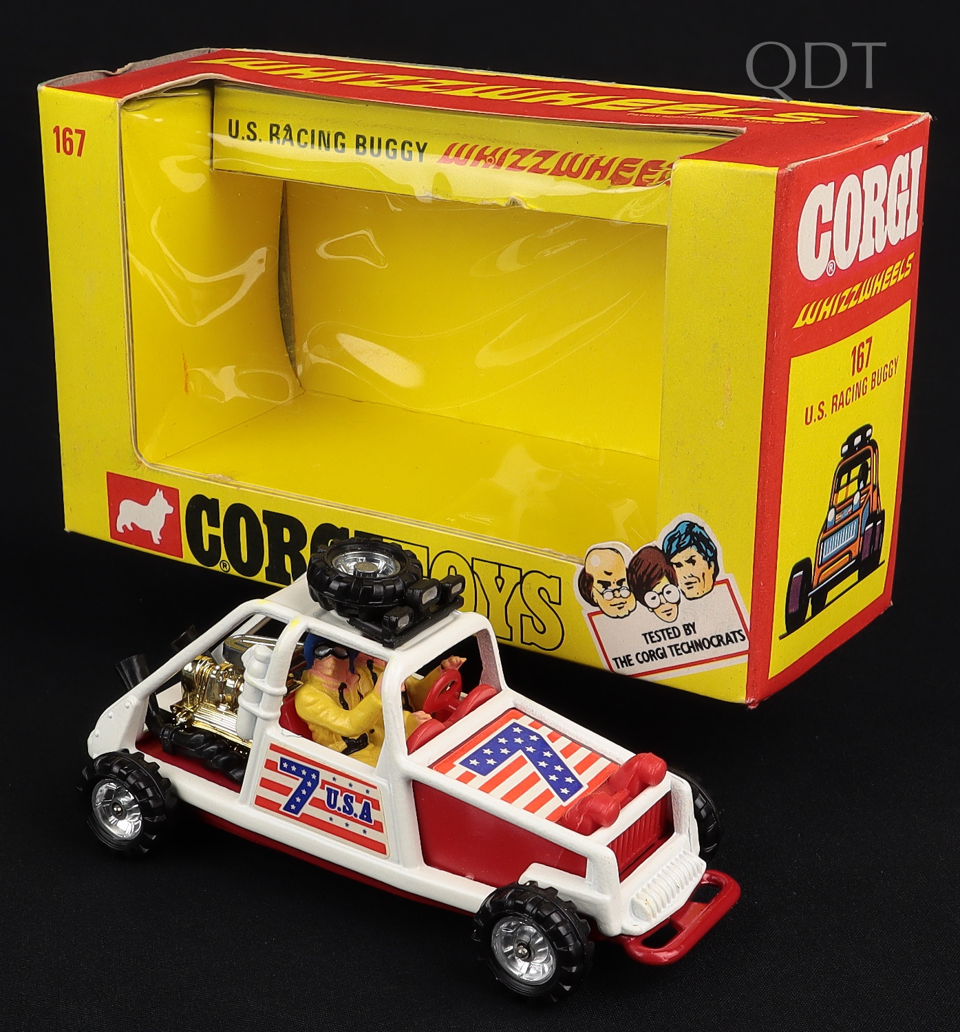 U.S. Racing Buggy by Corgi Toys, No. 167. Version with recessed whizzwheels. Very, very near mint/boxed. From The Elmer Collection.