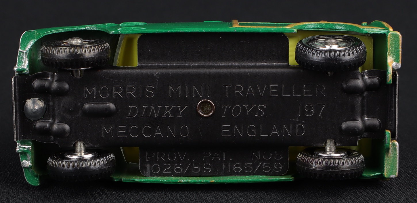 Morris Mini Traveller by Dinky Toys, No. 197. Rare issue in deep green with a LEMON interior. Very, very near mint/boxed. Starting bid £200. Please note that QDT apply 12.5% buyer's commission.
