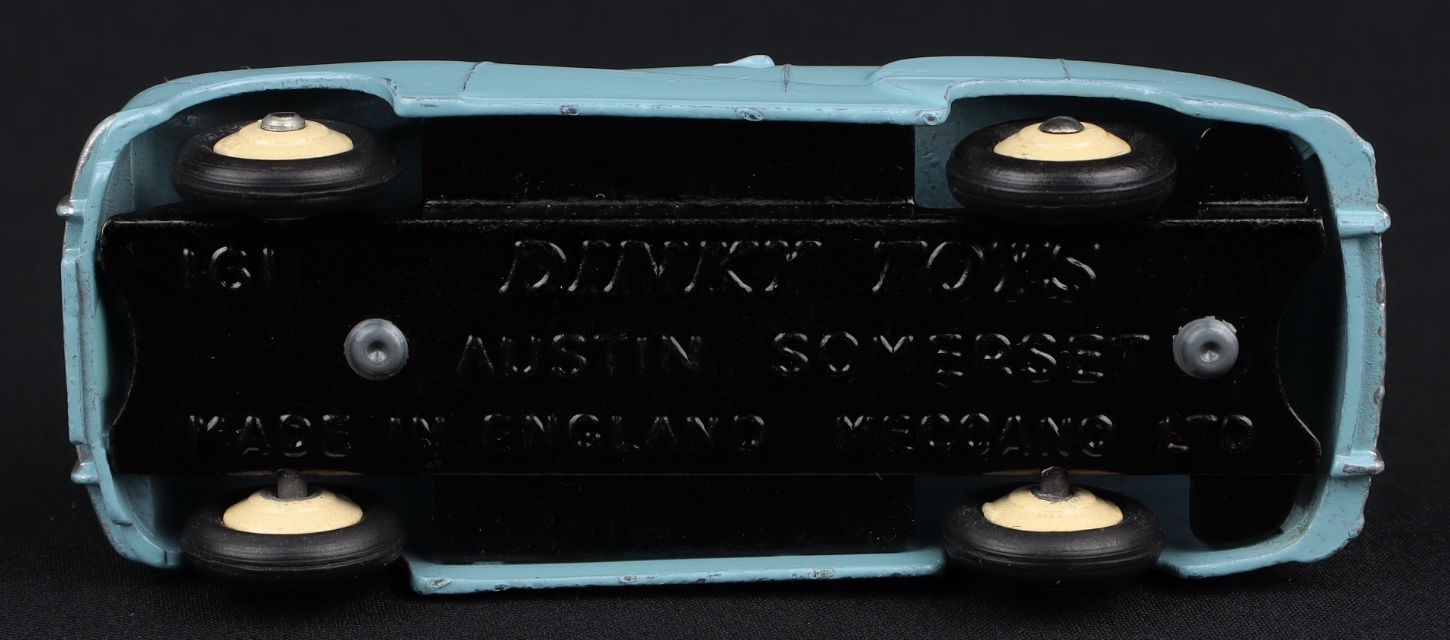 Austin Somerset Saloon by Dinky Toys, No. 161. Light blue issue with CREAM wheels. Very near mint/boxed. QDT starting bid £400. Please note that QDT apply 12.5% buyer's commission.