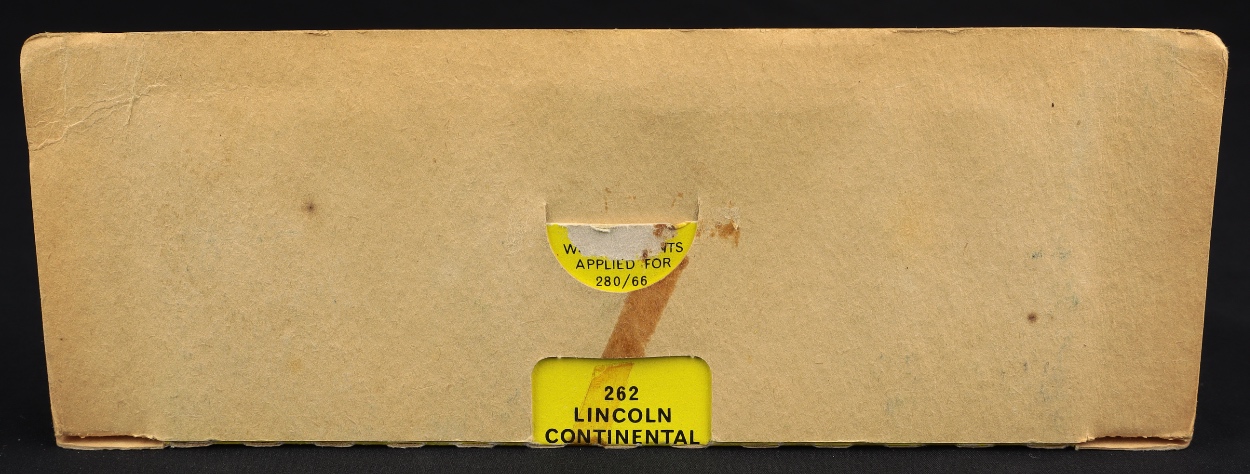 Lincoln Continental Executive Limousine by Corgi Toys, No. 262. Very near mint/boxed. Scarce BLUE AND FAWN version! Complete picture strip & model specific leaflet/Corgi Club Membership Form. 2 original packing card pieces. Cream of the crop from The Mark Mulvale Collection!