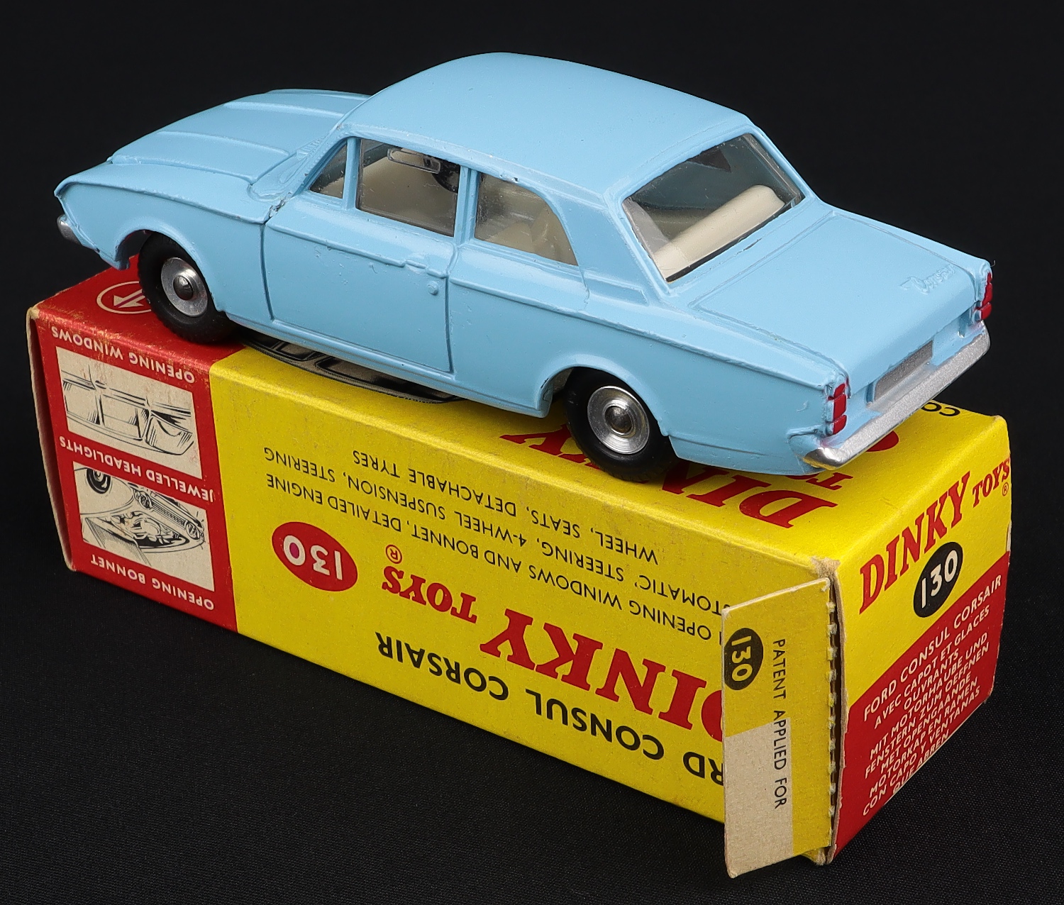 Ford Consul Corsair by Dinky Toys, No. 130. Very near mint/boxed with INFORMATIVE SLIP & SERRATED TAG. From The Reference Collection.