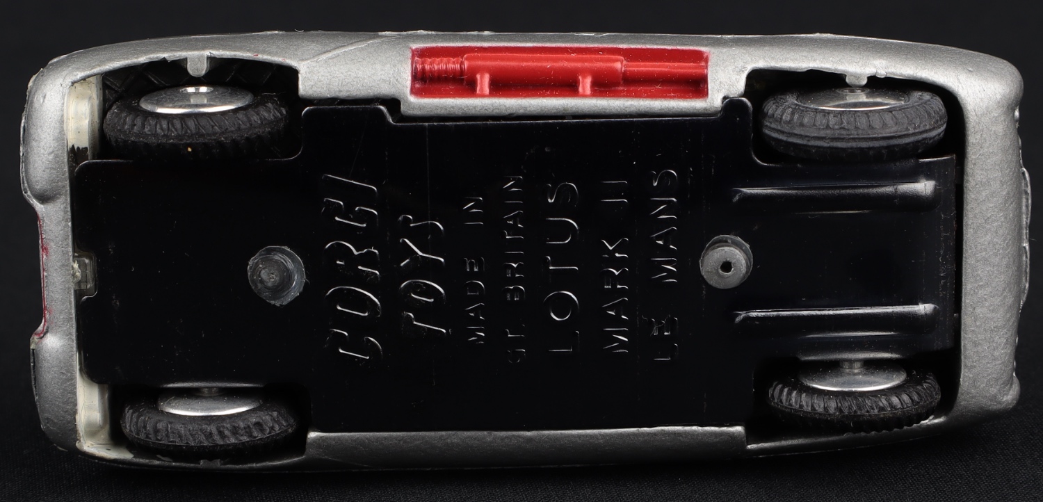 Lotus Mark Eleven Le Mans Racing Car by Corgi Toys, No. 151. Silver with Racing No. 1. Scarce. Very, very near mint/boxed. From The Elmer Collection.