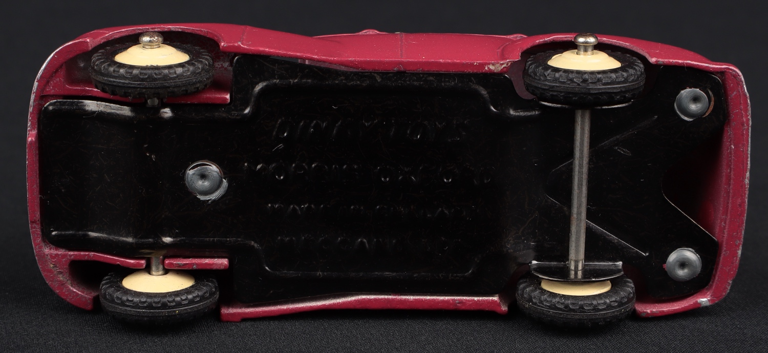 A classic Dinky model issued just during 1954 with a shining cerise and ivory paint finish, cream hubs, bright baseplate. Original, well-shaped treaded tyres. In pleasing, all original condition.