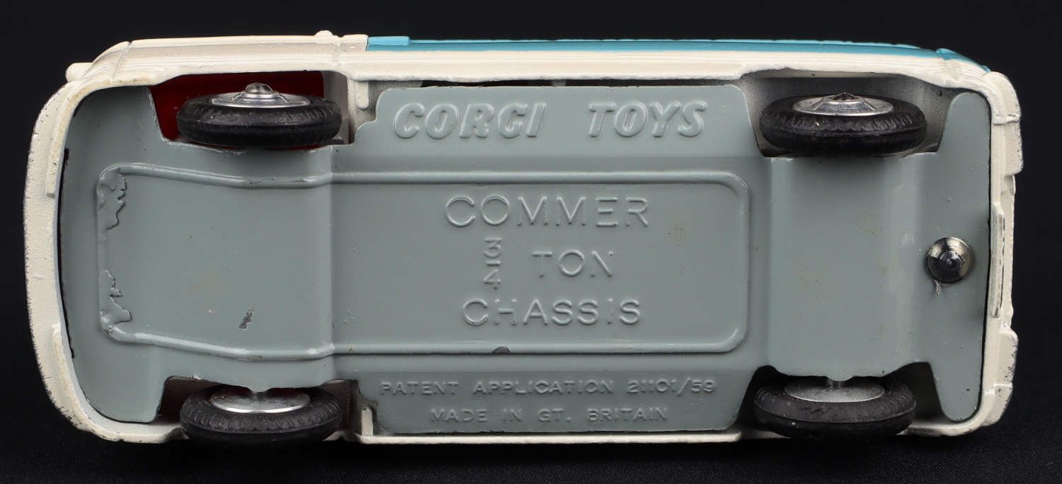 A popular Corgi model, this Commer Milk Float has an all original blue and white finish, with milk load and shaped spun wheels with suspension. Fine tread original tyres are well-shaped.