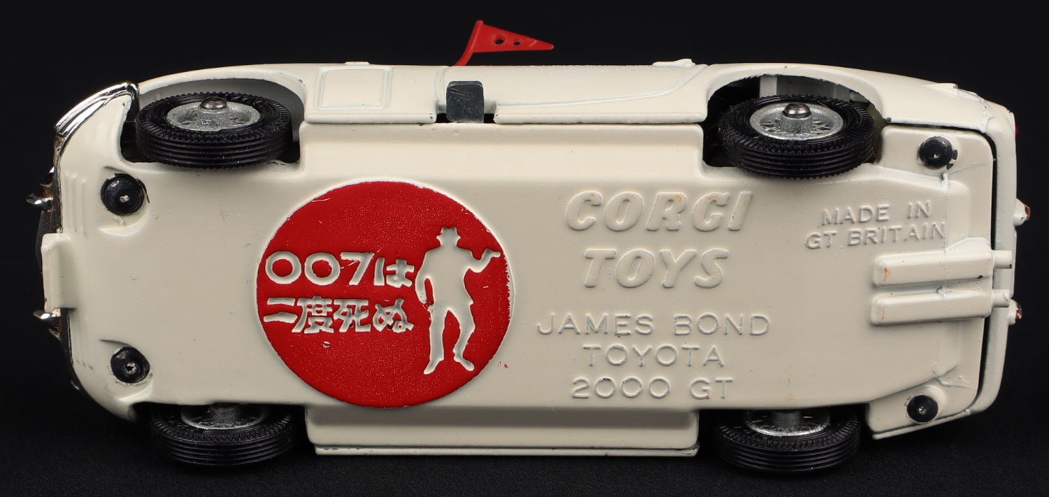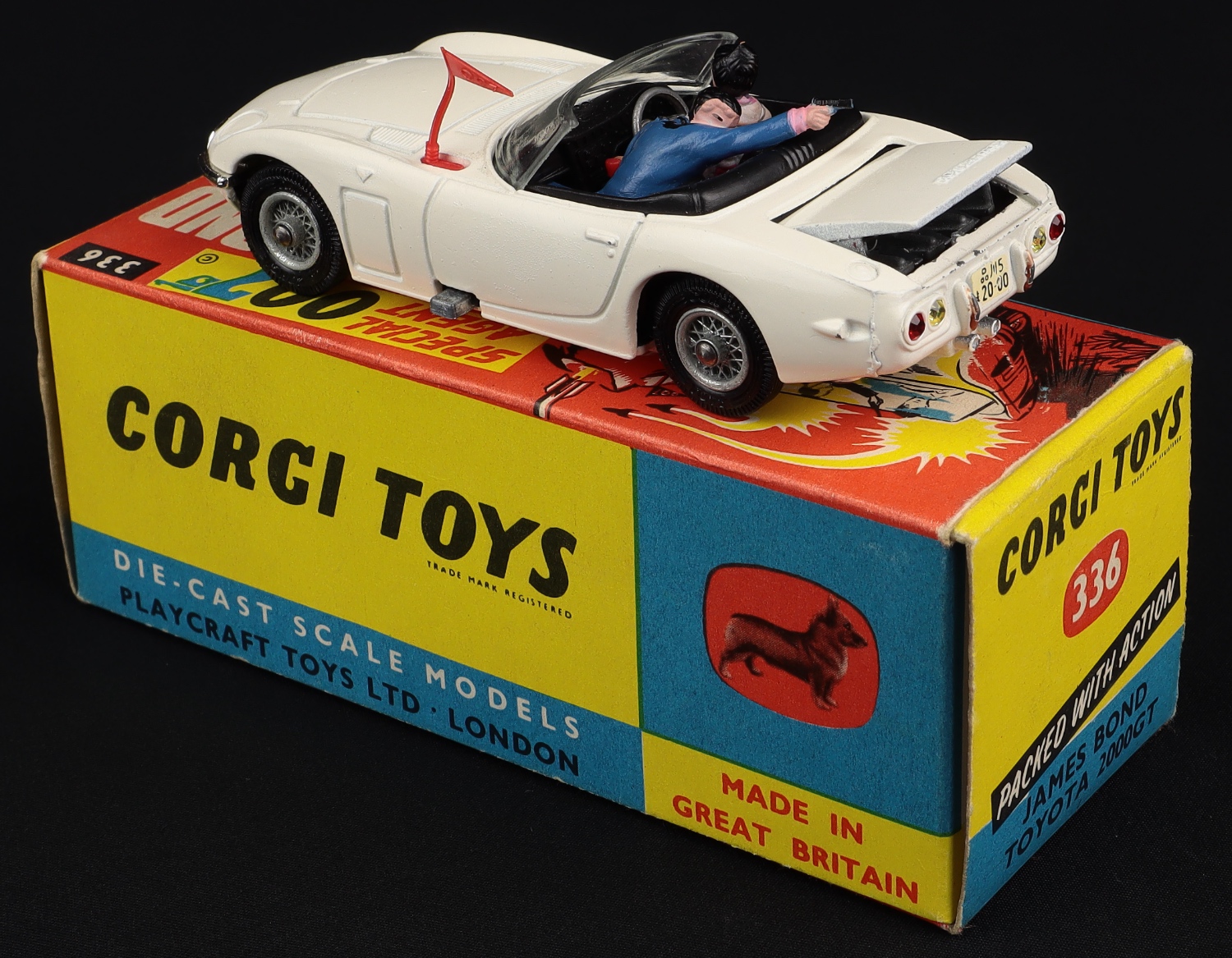 James Bond Toyota 2000GT by Corgi Toys, No. 336. Very near mint (boot remains open)/boxed. With Secret Instruction Packet. Fresh inner & outer box! From The Elmer Collection. Starting bid £150. Please note that QDT apply 12.5% buyer's commission.