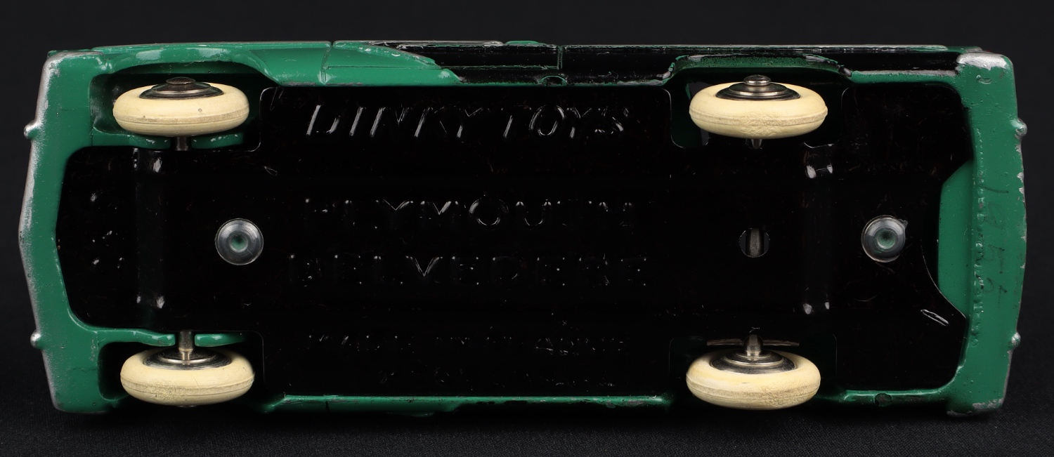 Plymouth "Belvedere" by French Dinky Toys, No. 24D. Very near mint /(plain) boxed. Deep green and black, convex wheels, early issue. From The Dutch-Hillman Collection. QDT starting bid £150. Please note that QDT apply 12.5% buyer's commission