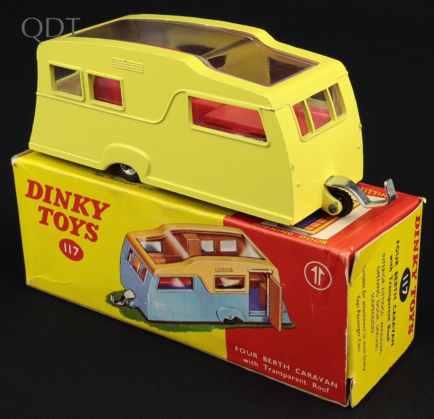 Four Berth Caravan by Dinky Toys, No. 117. Yellow. Near mint plus/boxed. From The Dutch-Hillman Collection.