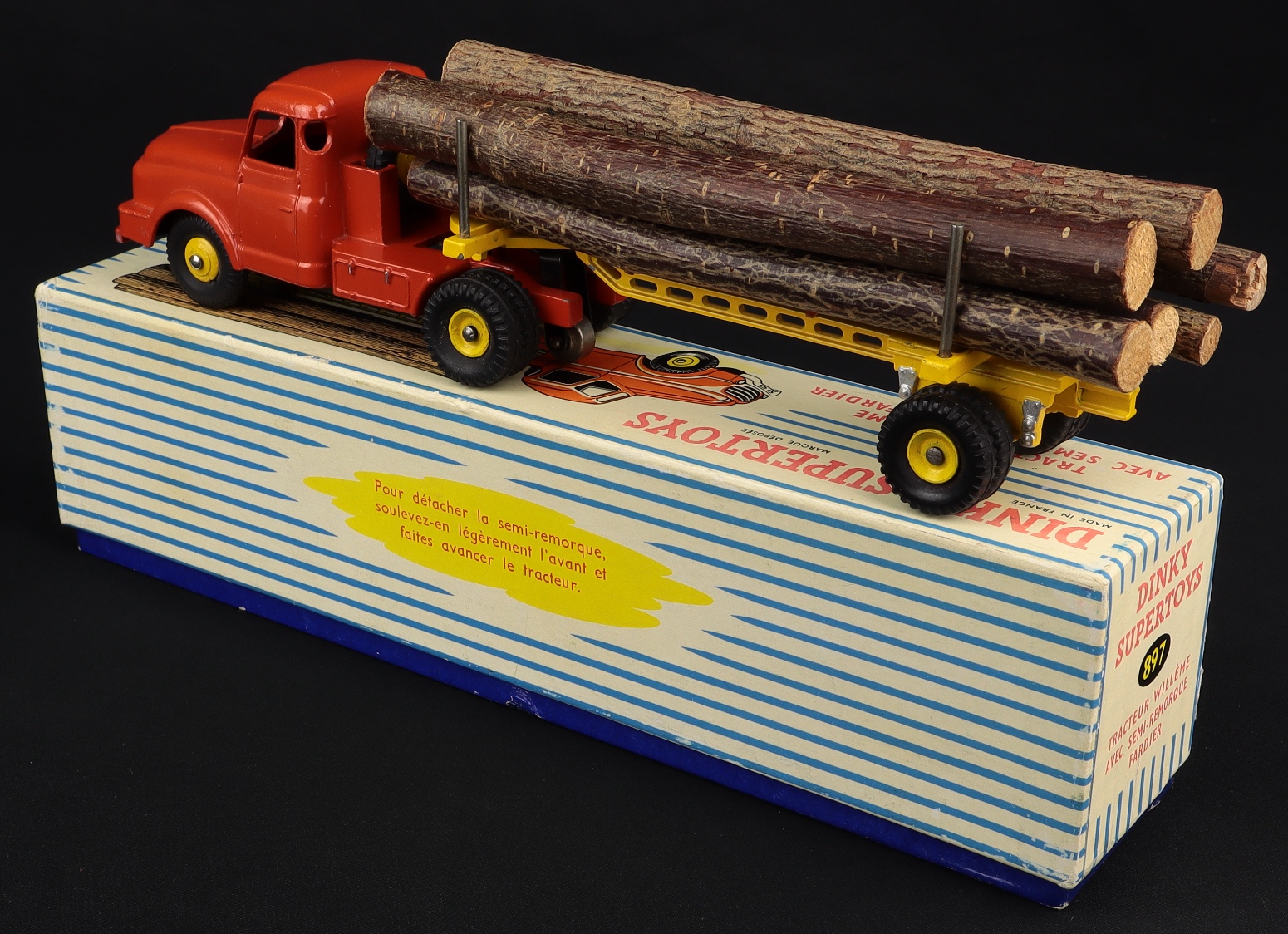 Willeme Log Carrier Truck by French Dinky Toys, No. 897. Very near mint/boxed. Early issue with pierced detail and cast cab wheels. From The Hampshire Collection.