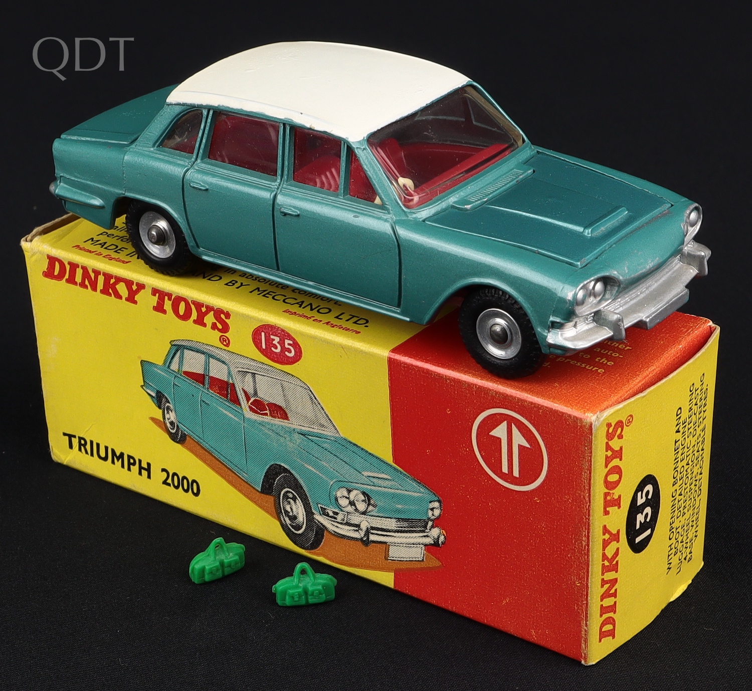 Triumph 2000 by Dinky Toys, No. 135. Very near mint/boxed, with 2 pieces of original luggage.