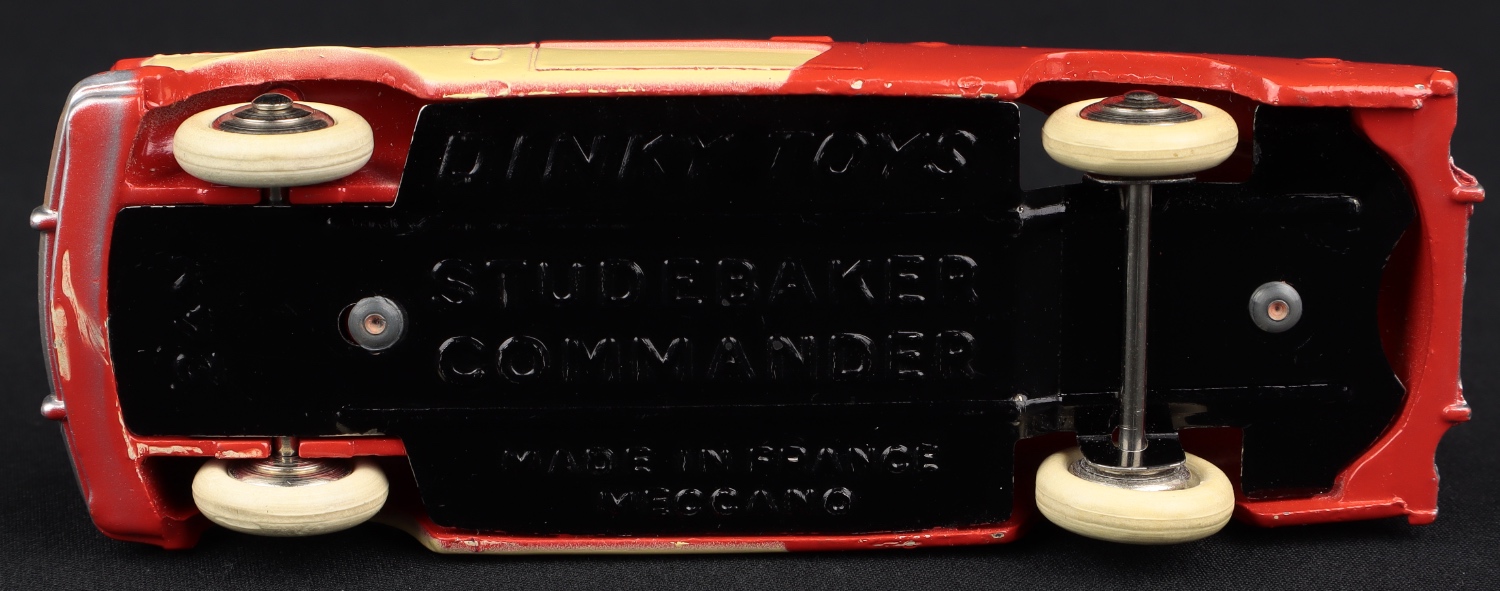 Studebaker Commander by French Dinky Toys, No 24Y. Very near mint/boxed. Rarest version in very pale fawn with maroon roof only. From The Dutch-Hillman Collection. QDT starting bid £450. Please note that QDT apply 12.5% buyer's commission.