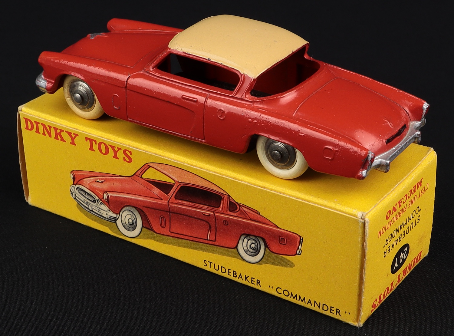 Studebaker Commander by French Dinky Toys, No. 24Y. Early issue WITHOUT towing eye. Very near mint/boxed. From The Dutch-Hillman Collection.