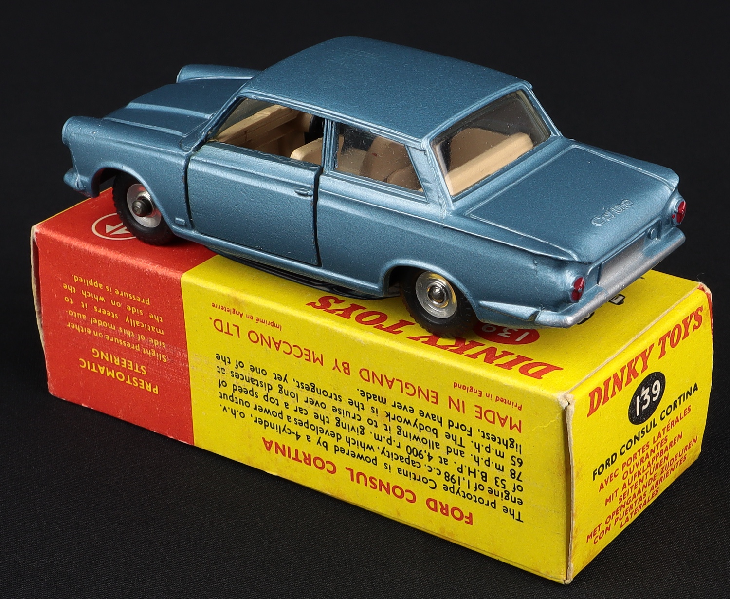 Ford Consul Cortina by Dinky Toys, No. 139. Metallic blue version. Very near mint/boxed.
