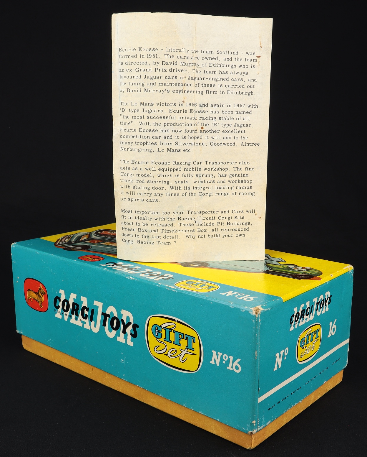 Corgi Gift Set 16 Ecurie Ecosse Set. Suspension issue. Near mint - very near mint/boxed. With Instruction Leaflet & inner packing. From The Hampshire Collection.