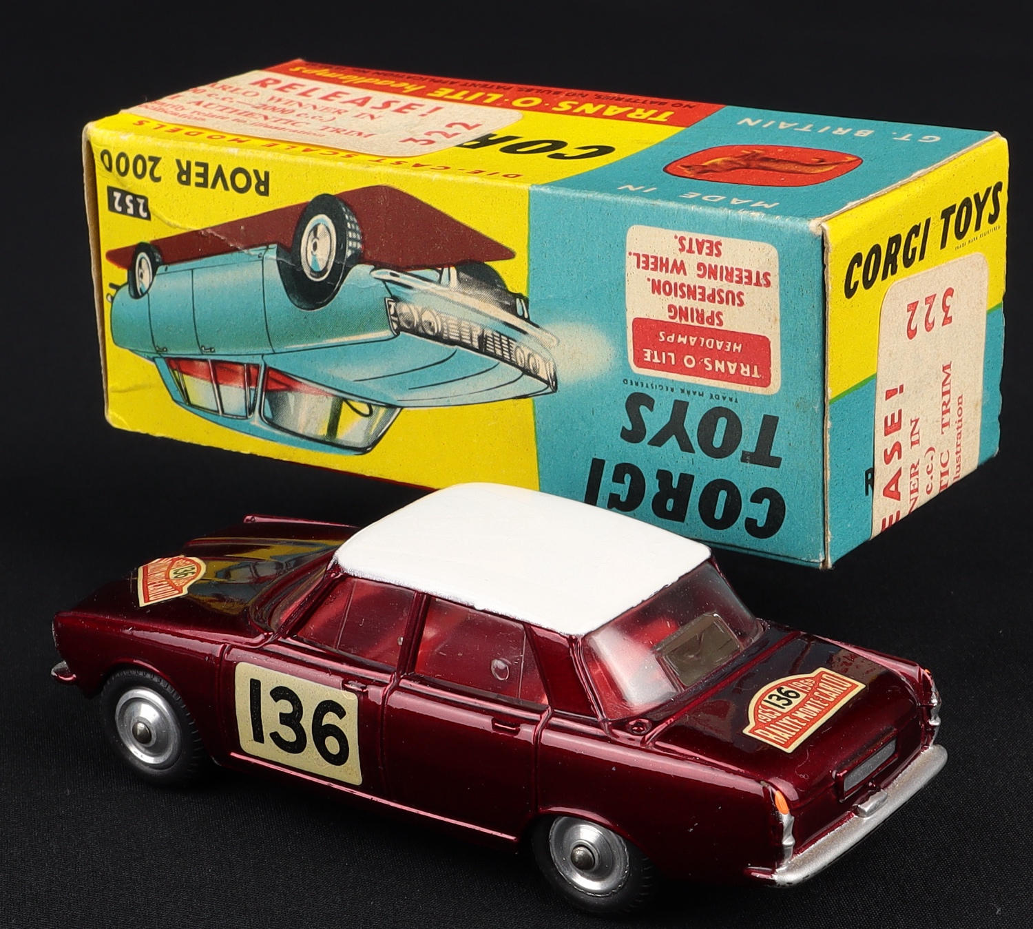 The box is complete, clean and bright, with both intact 322 over-stickers on the 252 box. With Corgi Club Membership Form.