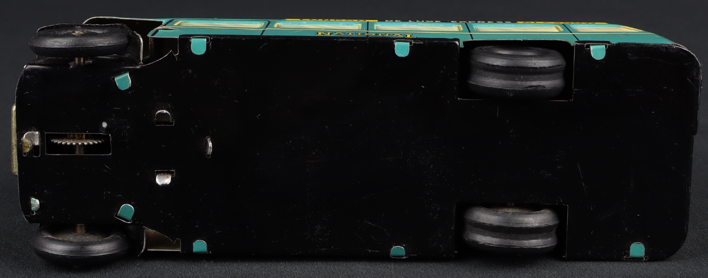 This pleasing tinplate bus has a working clockwork motor and comes with the correct ‘Weekin’ keys for winding.