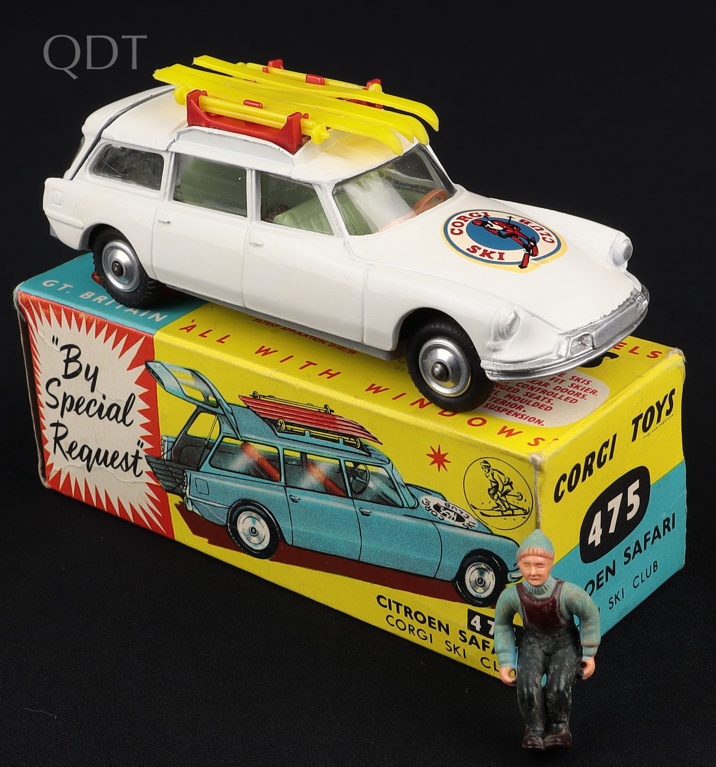 Citroen Safari 'Corgi Ski Club' by Corgi Toys, No. 475. Yellow skis and poles version. Red roof rack. Very near mint/boxed, with Instruction Slip. From The Elmer Collection.