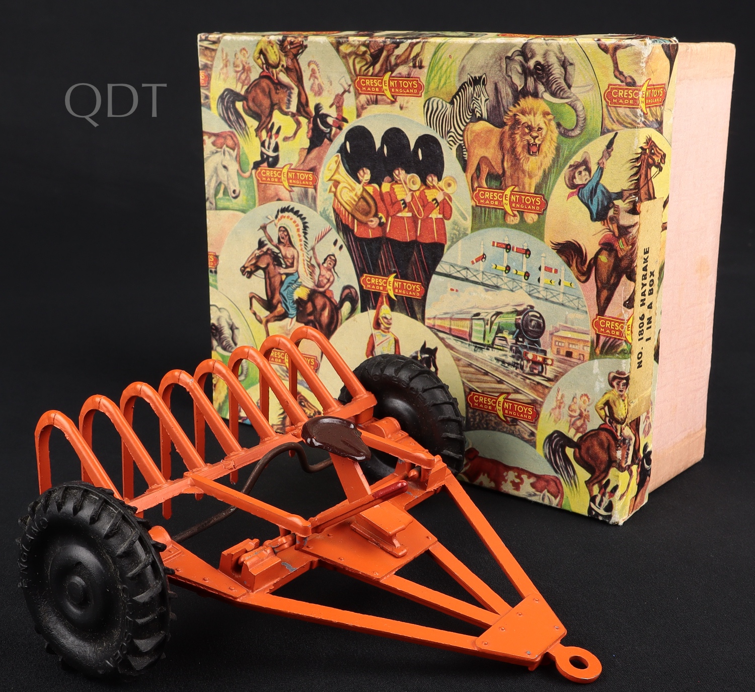 Hayrake in a Box by Crescent Toys, No. 1806. Very near mint/boxed. Scarce early 1950's piece from The Denis Tyler Collection. Starting bid £75. Please note that QDT apply 12.5% buyer's commission.