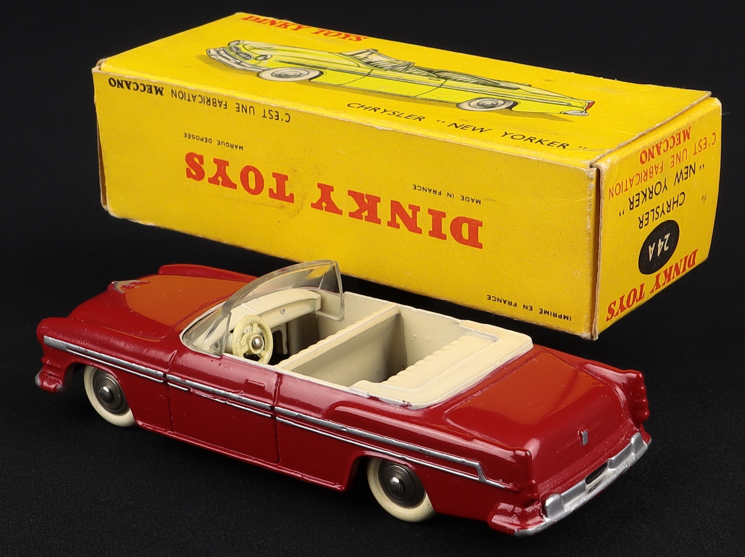 A fine American car from the French Dinky factory! This version in deep red with an ivory interior was made between 1956-57.