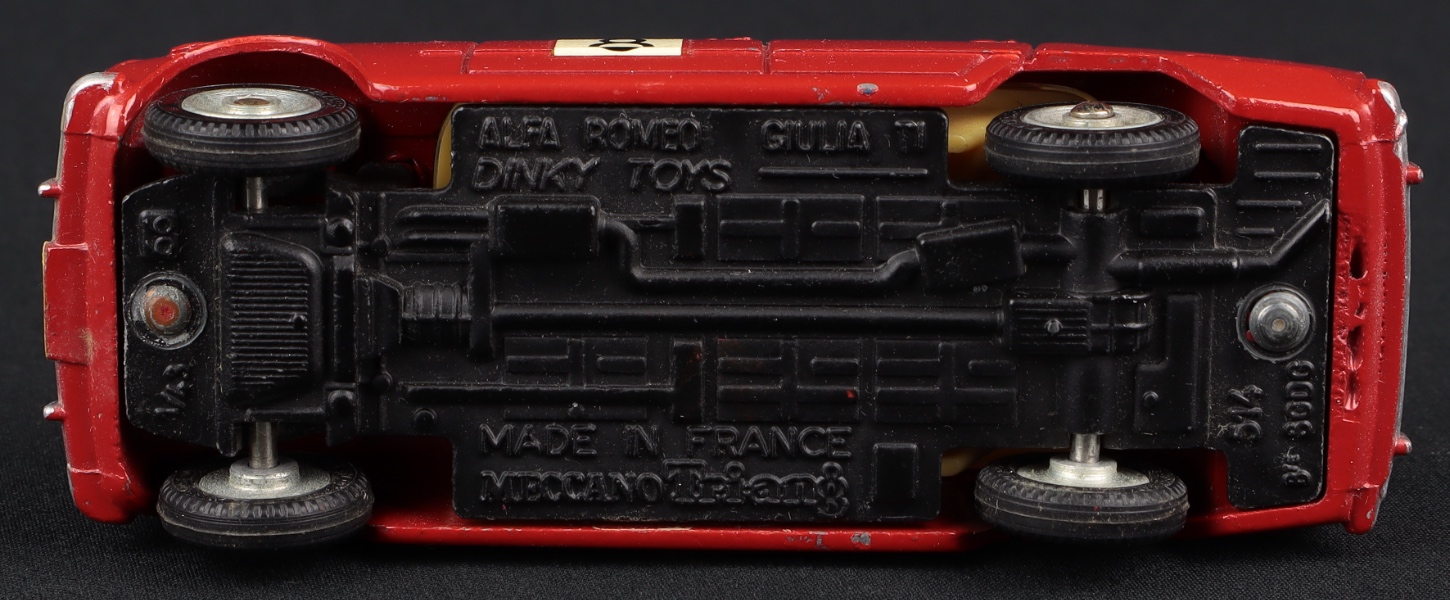 This exciting Alfa Romeo rally car is finished in vivid scarlet with eye-catching transfers. Six jewelled head and spot lights, red jewelled rear lights, unmistakable Alfa radiator, light tan detailed interior, racing number 8 (one side virtually complete, the other complete).