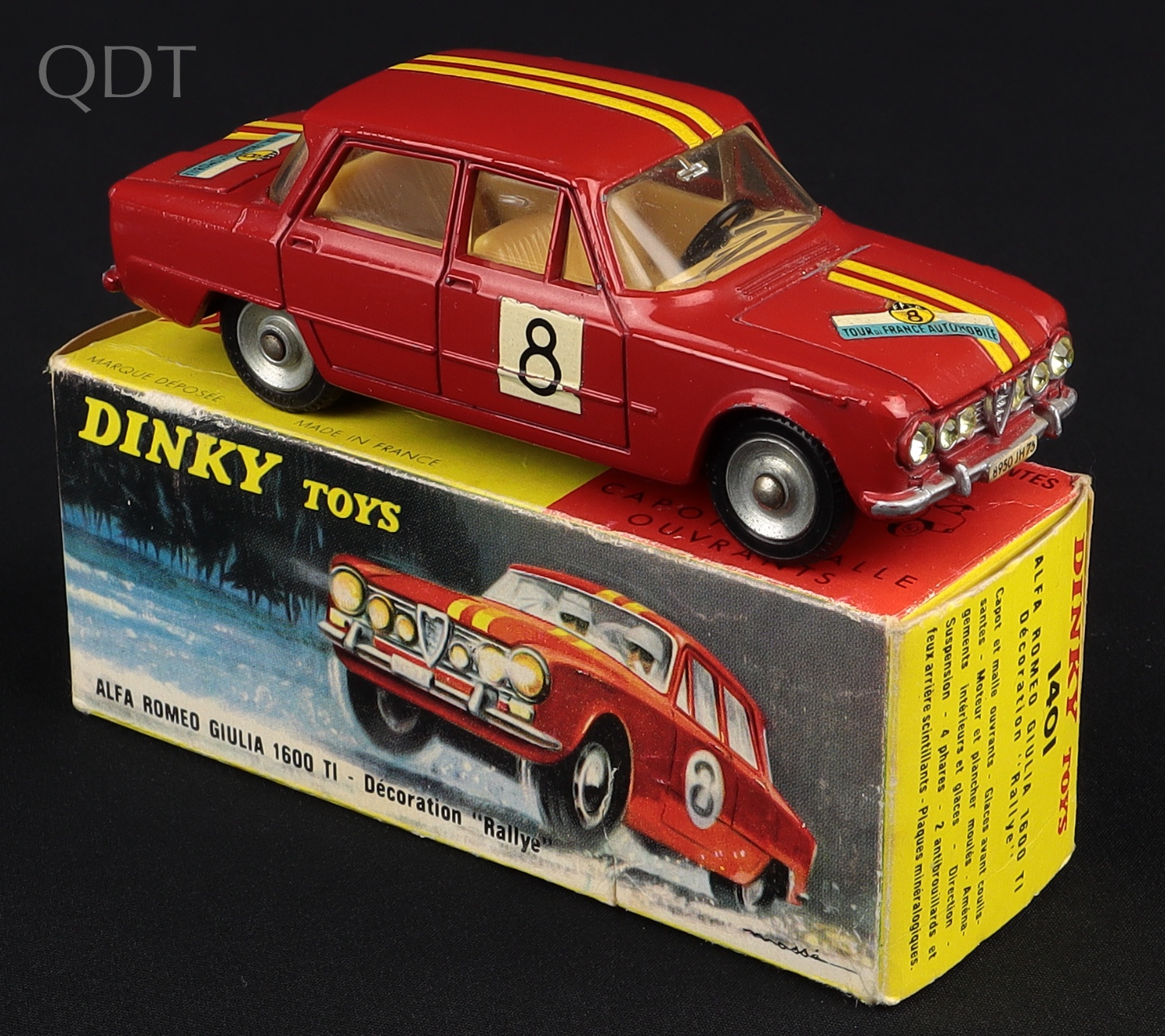 French Dinky Toys 1401 Alfa Romeo 1600 TI - Decoration "Rallye"
