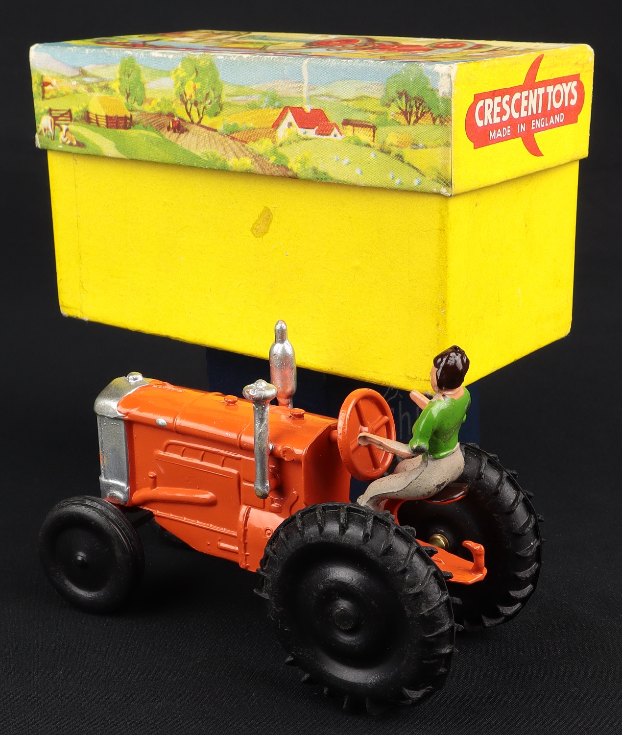 Tractor with Driver by Crescent Toys, No. 1805. Very near mint/boxed with farmhand. Scarce. From The Denis Tyler Collection. Starting bid £100. Please note that QDT apply 12.5% buyer's commission.