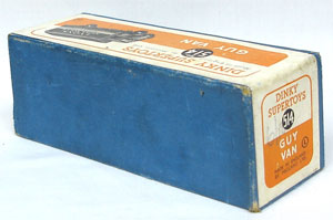 The box base is rather rubbed now and is smaller than usual. We suspect that another Dinky commercial box base was swapped at some time in the toy box!