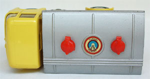 Issued between 1959-61, this model has a shining lemon yellow cab and chassis, silver tipper and bright flat spun hubs. This is a transition issue model with flat spun wheels (later issues had shaped spun wheels) and red plastic filler caps (earlier issues had metal filler caps).