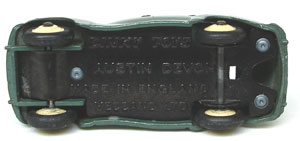 Issued between 1954-59 in various colour finishes, and this particular version is not an easy find! In original condition throughout, with a shining bottle-green finish and cream wheels. Bright baseplate too.