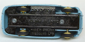 Dinky 106 Austin Atlantic Convertible. Light blue issue with scarce dark blue interior and cream hubs. Excellent/box (scarce box design).