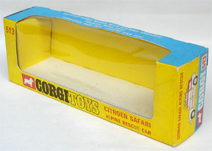 Corgi 513 Citroen Safari Alpine Rescue Car. Very near mint (one mark!)/boxed. Red roof rack version. Another shop-fresh model from the extensive Corgi collection we are handling.